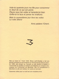Quarante Voiles pour un exilRécits et fragments poétiques - 105 pages.Éditions TroisMontréal , Québec - 1986. |