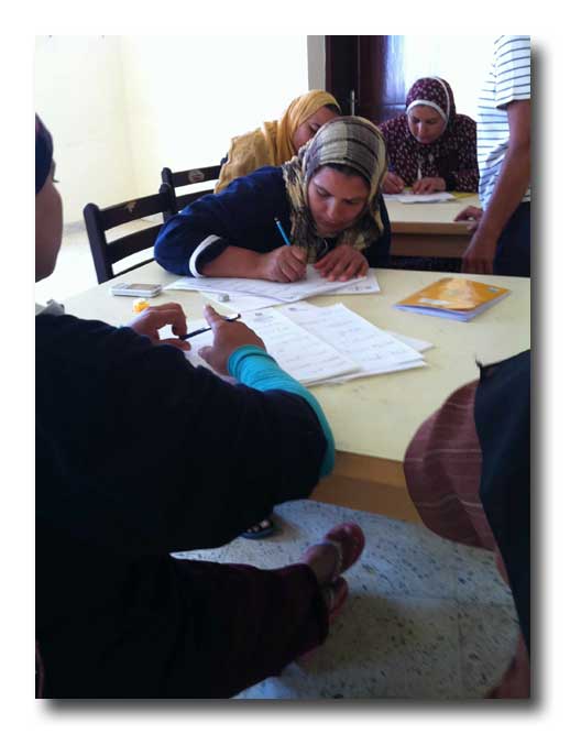 La classe dure deux heures par jour à raison de 3 ou 4 jours par semaine. Une troisième heure est consacrée à l'éducation globale sur divers sujets d’intérêt publique concernant la vie courante: santé, limitation des naissances, convivialité et tolérance, politique et démocratie. Si elles réussissent à l’examen final, elles reçoivent une prime de LE50. Le cours est dispensé par un professeur spécialisé en la matière, en l’occurrence Madame Bertha Badr. |