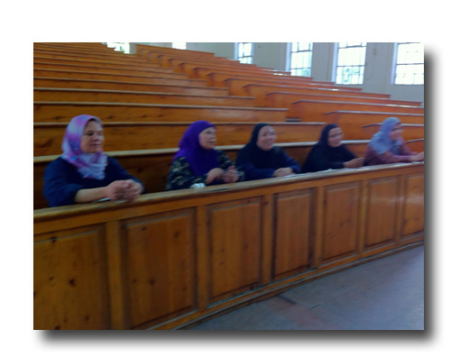 La deuxième classe a été installée dans les locaux du département d’Architecture de l’Université du Caire en septembre 2011. Elle a accueilli une douzaine de femmes qui nettoient les locaux du département. Le Doyen de ce département a eu la générosité d’accepter que la classe leur soit dispensée sur leurs heures de travail, ce qui facilite beaucoup les choses.